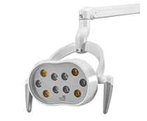 三模式10珠 LED 感应灯 白光模式:色温可调,照度感应式无极调节,满足不同医生操作习惯;光固化模式:可感应切换黄光,防止树脂过快固化,操作时间更充裕;混合模式:光线更柔和,有效保护患者和医生眼睛